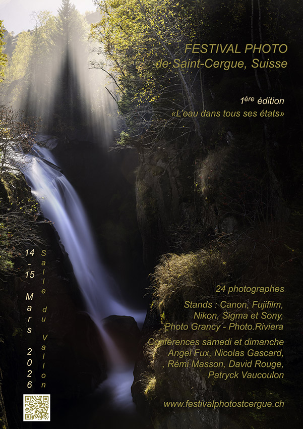 Du 13 au 15 mars 2026 j’exposerai mes images des eaux douces alpines à Saint-Cergue en Suisse à l’occasion de la première édition de ce Festival dont le thème est cette année « L’eau dans tous ses états ».